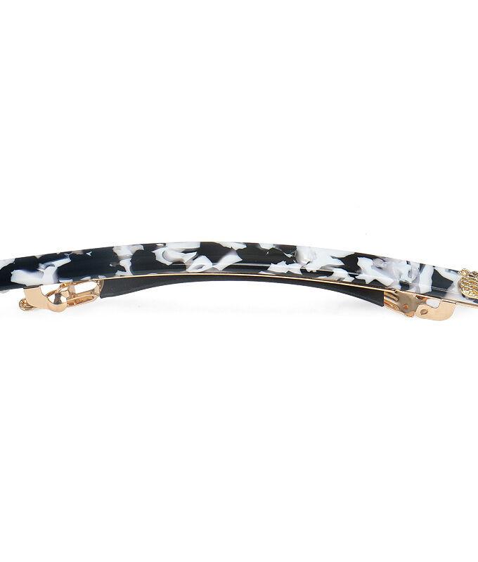Slim Hair Clip – Black & White Marble