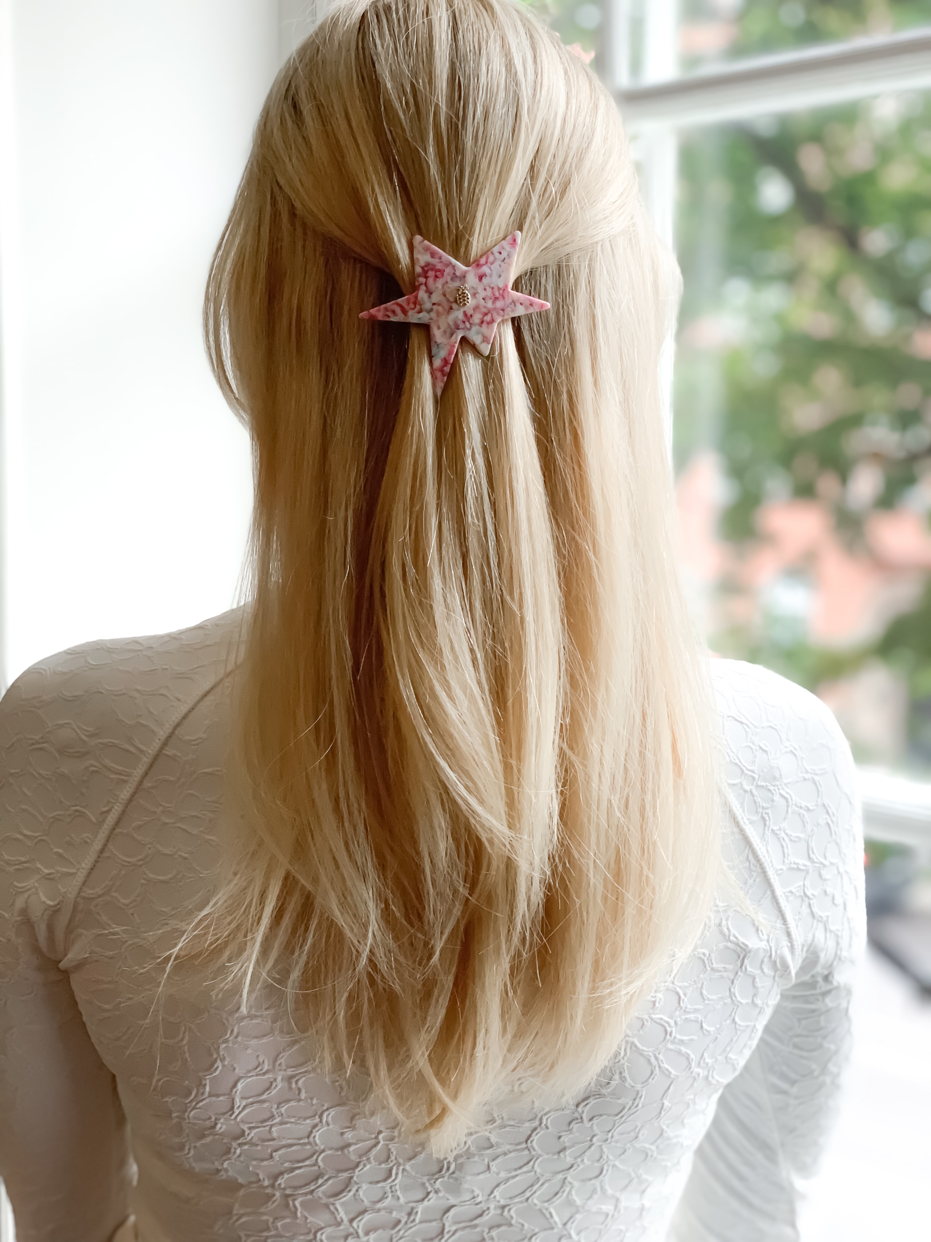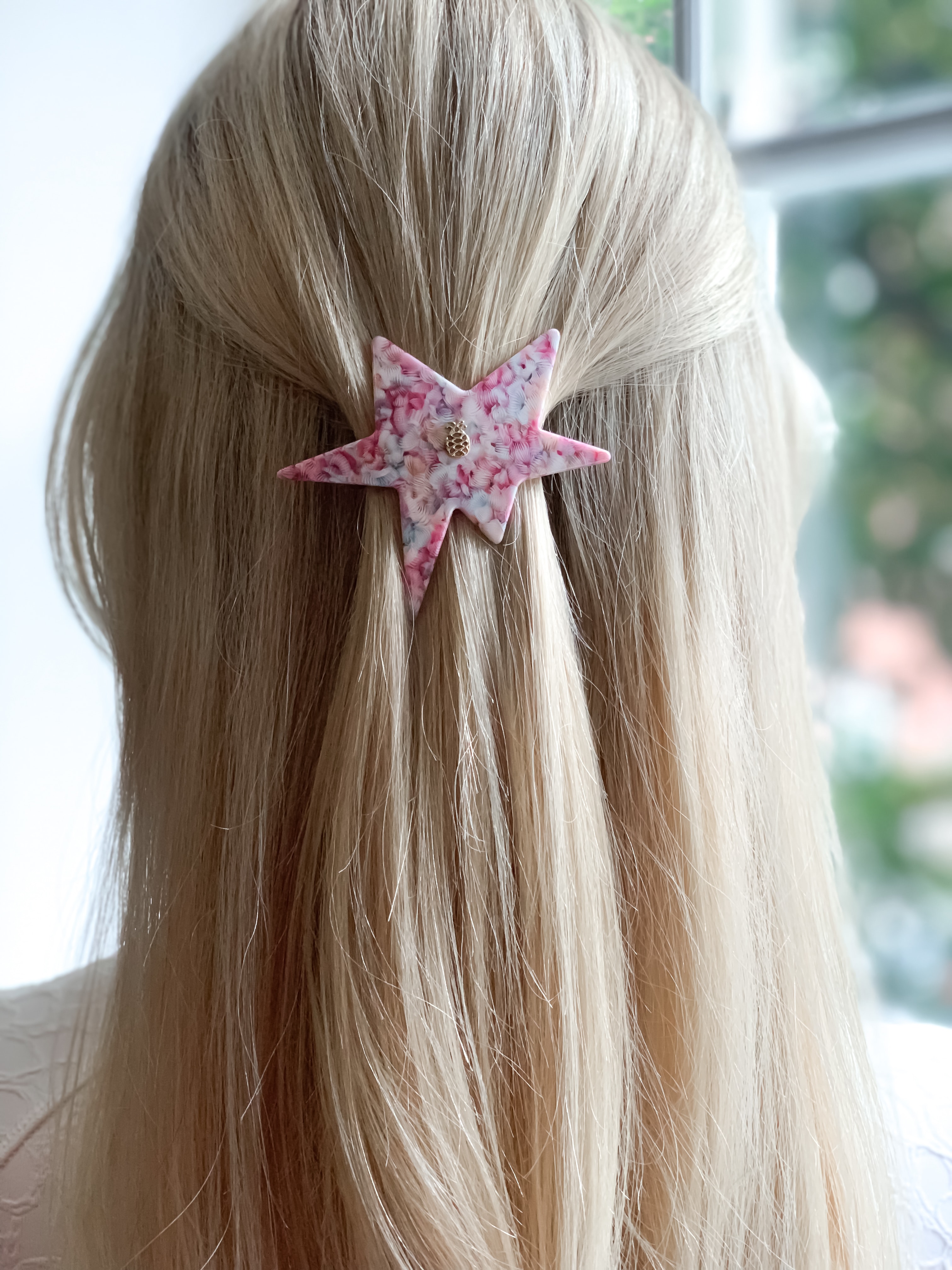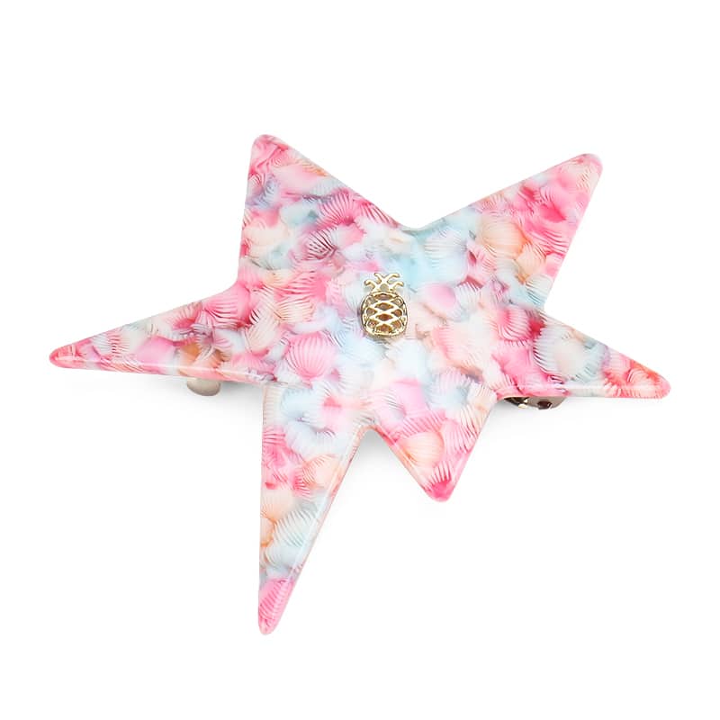 We love this eye catching star clip in a lovely mix of pastels, with a golden IA BON pineapple logo in center.