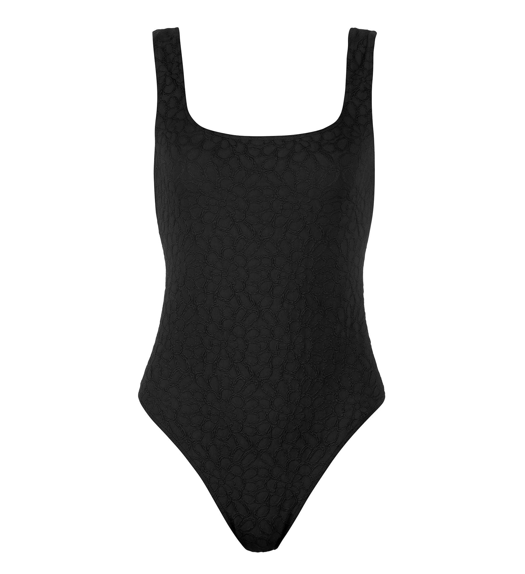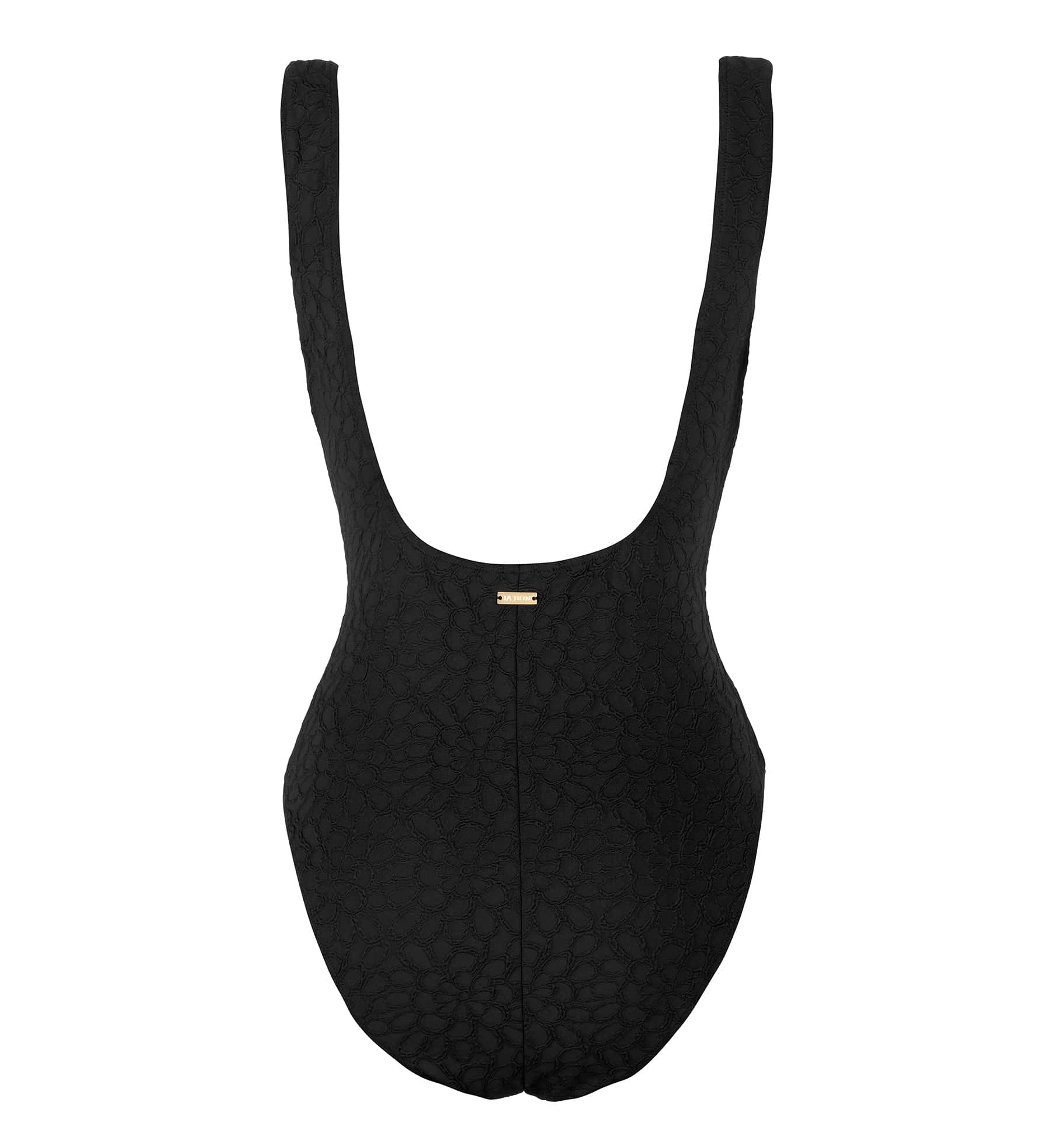 A classic one-piece swimsuit in luxurious and thick floral jacquard fabric.